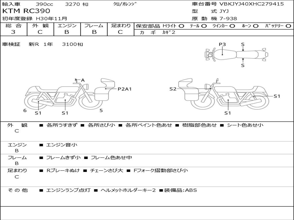 | Номер рамы / VIN | VBKJYJ40XHC279415 |