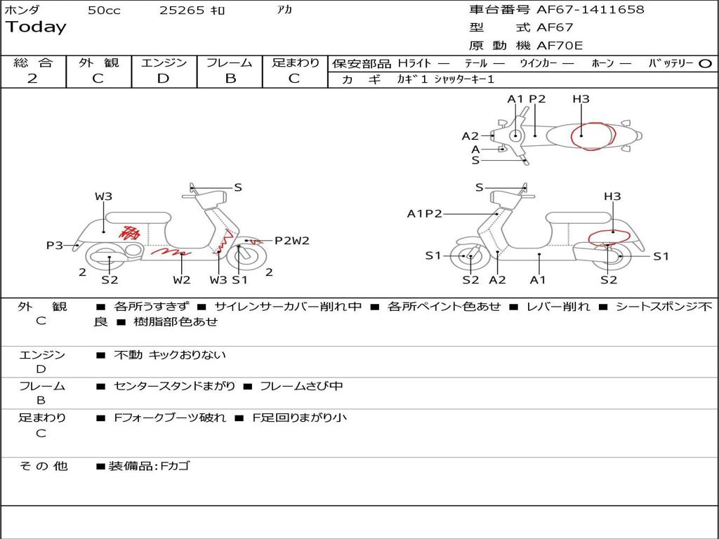 | Номер рамы / VIN | AF67-1411658 |