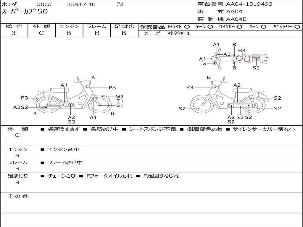 | Номер рамы / VIN | AA04-1019493 |