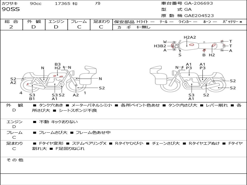 | Номер рамы / VIN | GA-206693 |