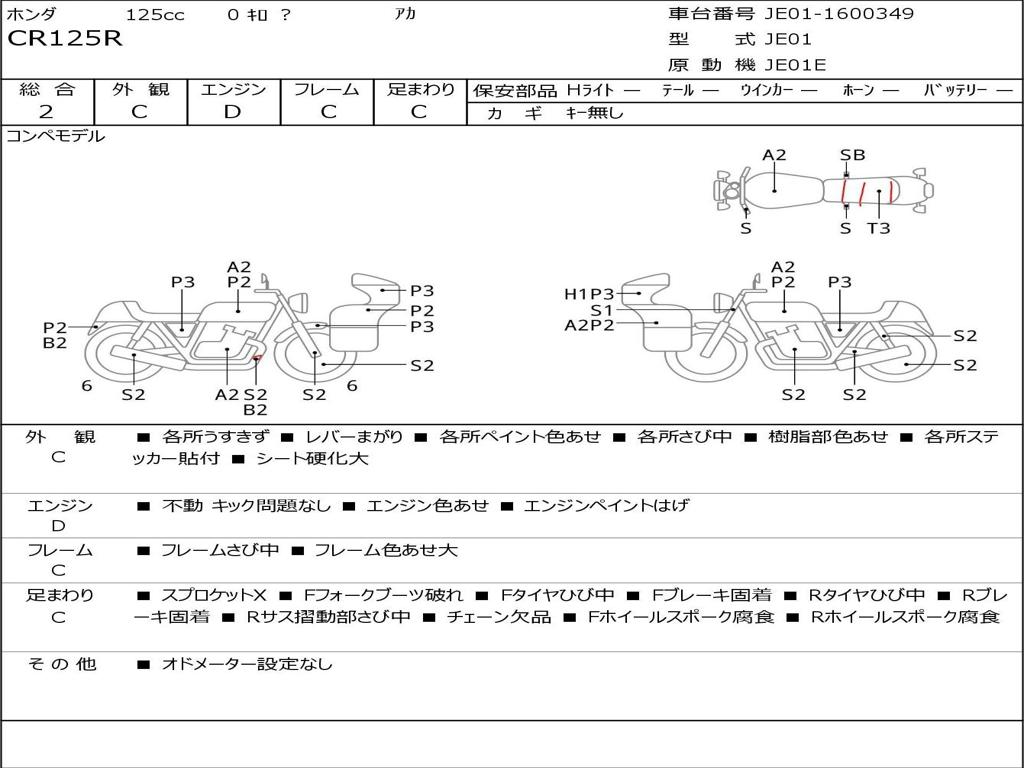 | Номер рамы / VIN | JE01-1600349 |