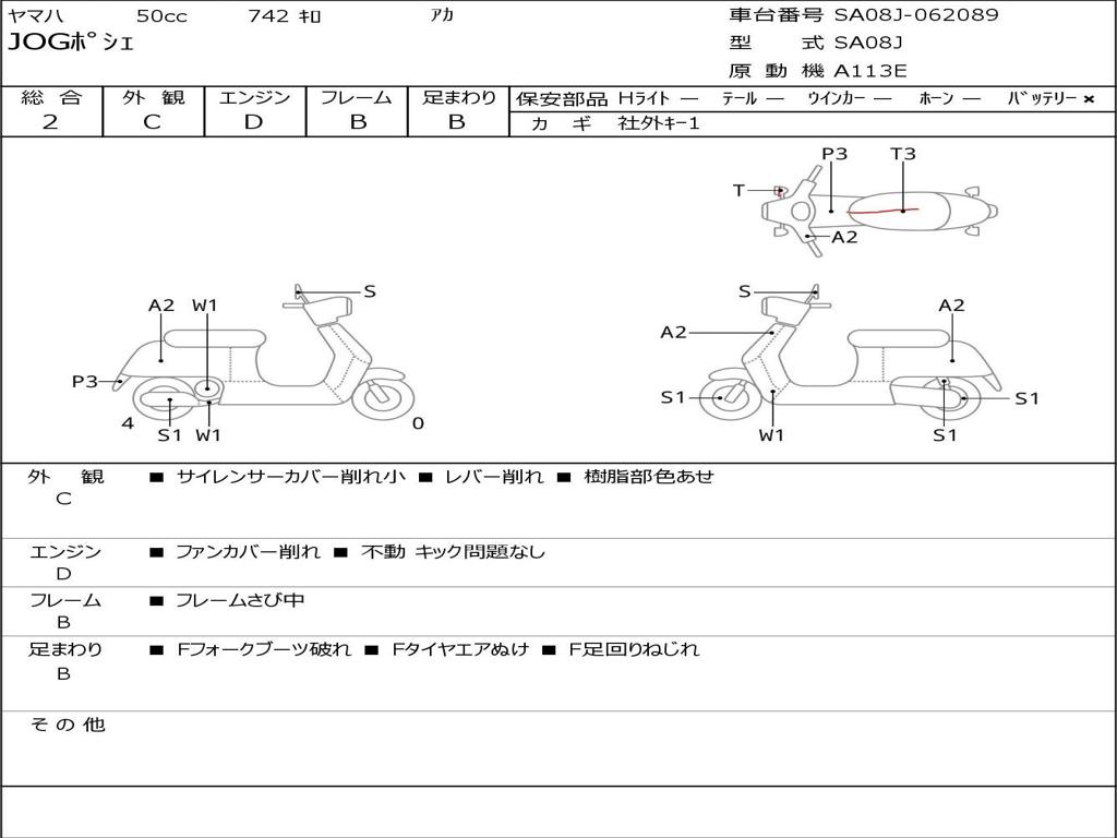 | Номер рамы / VIN | SA08J-062089 |