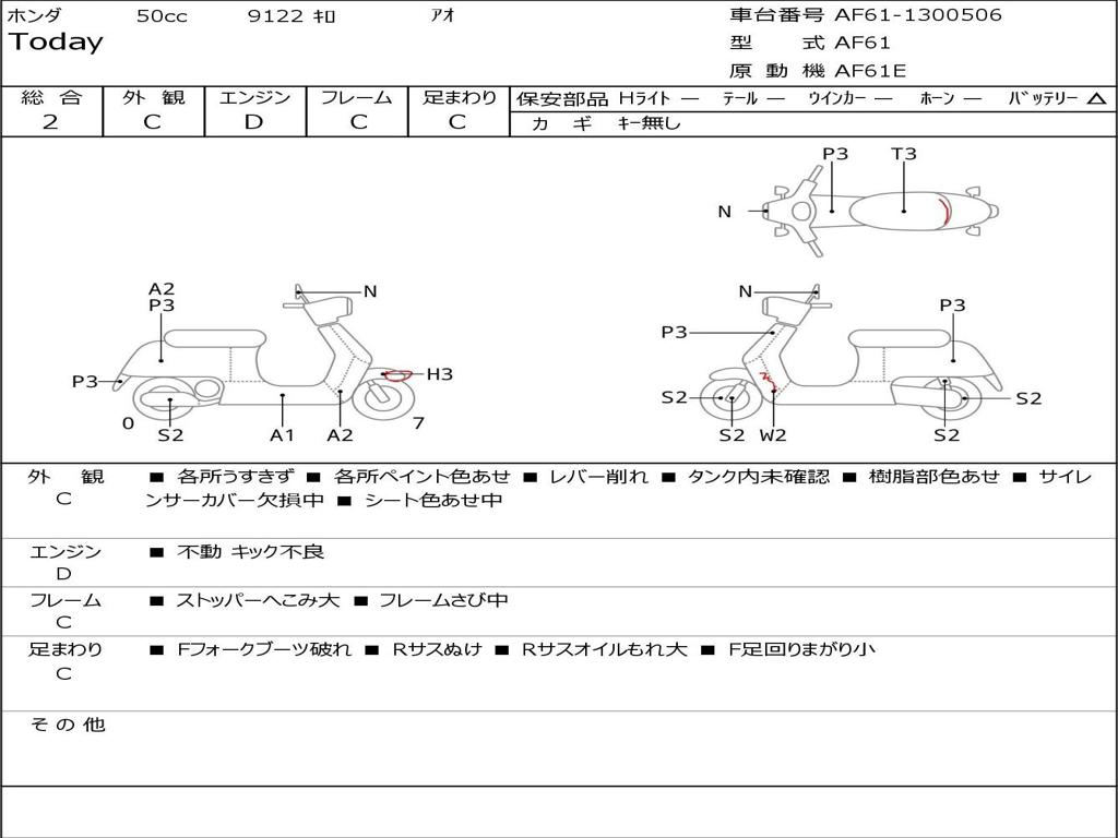 | Номер рамы / VIN | AF61-1300506 |