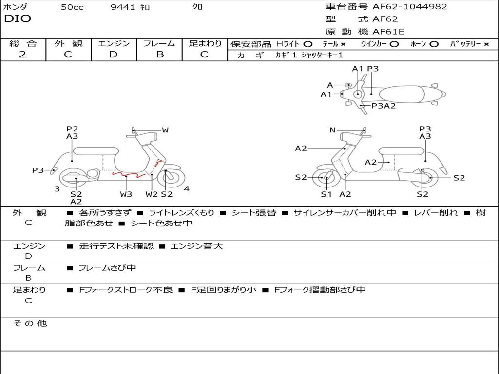 | Номер рамы / VIN | AF62-1044982 |