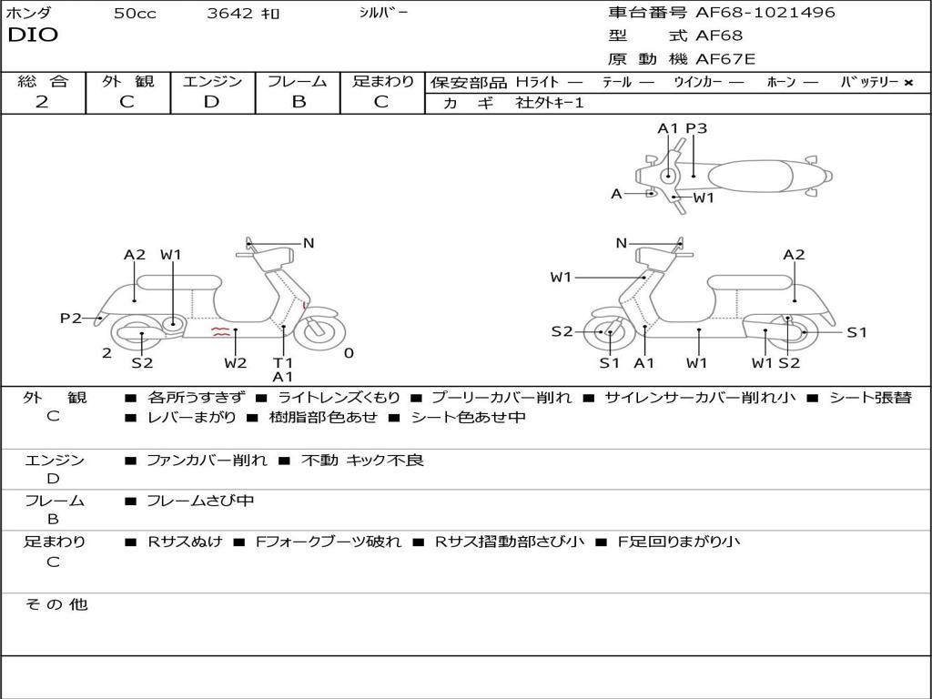 | Номер рамы / VIN | AF68-1021496 |