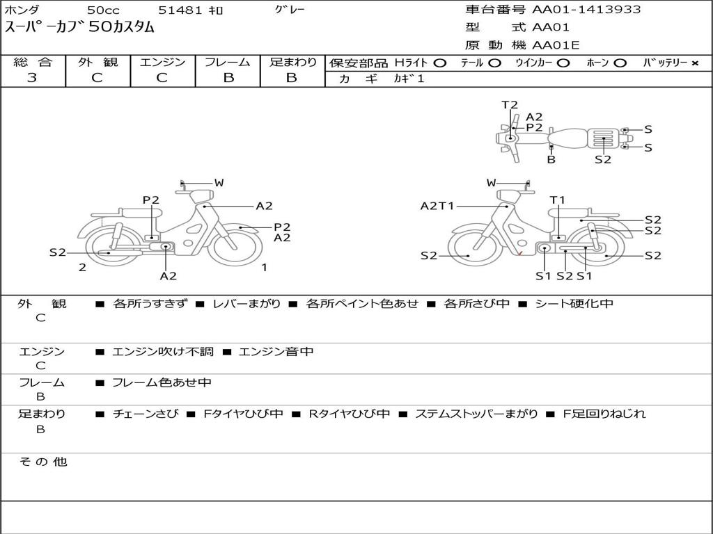| Номер рамы / VIN | AA01-1413933 |