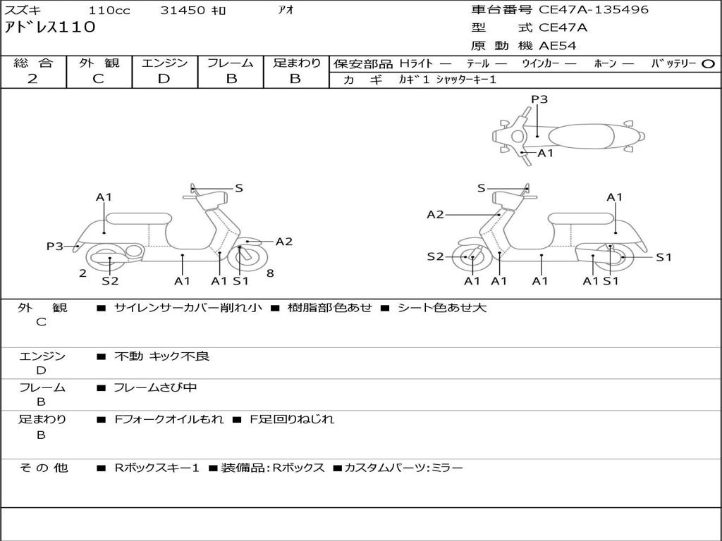 | Номер рамы / VIN | CE47A-135496 |