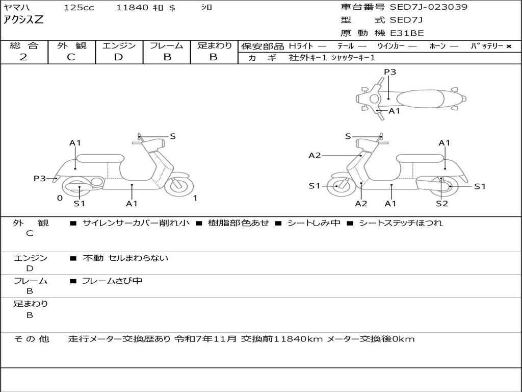 | Номер рамы / VIN | SED7J-023039 |
