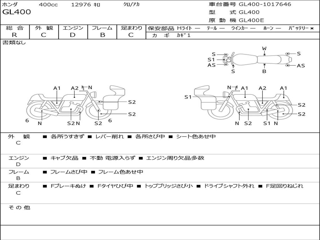 | Номер рамы / VIN | GL400-1017646 |