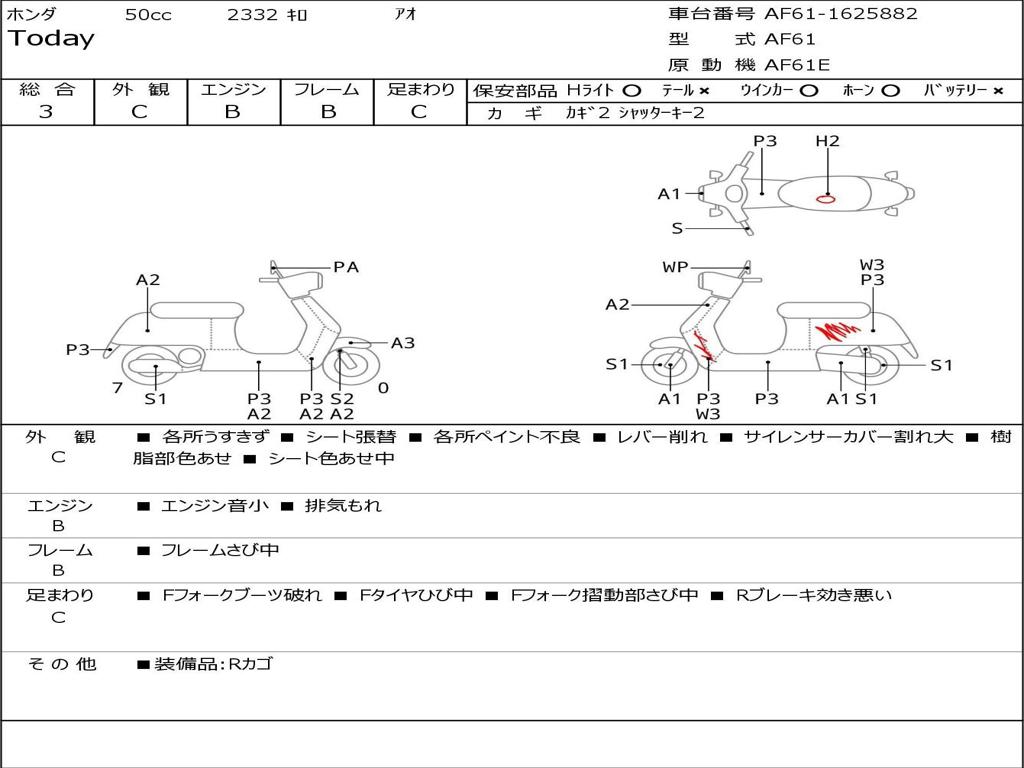 | Номер рамы / VIN | AF61-1625882 |