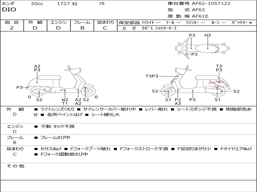 | Номер рамы / VIN | AF62-1057122 |