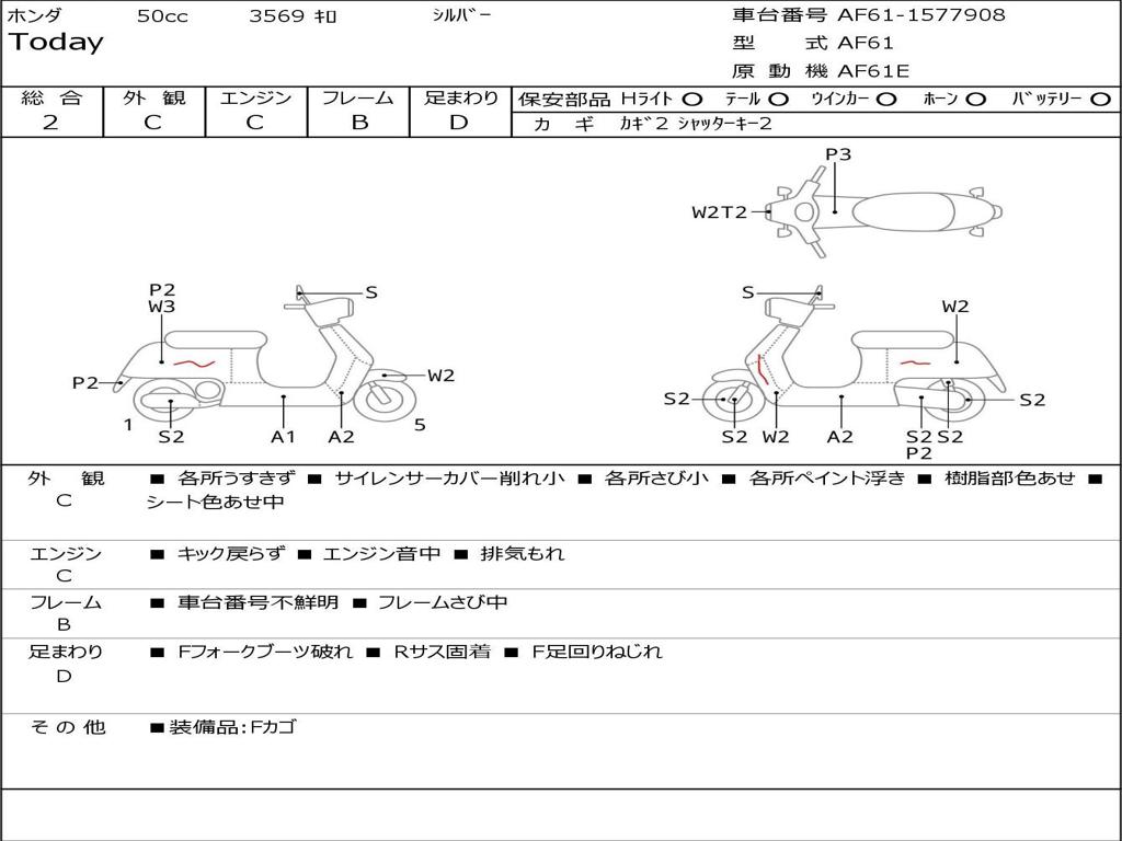 | Номер рамы / VIN | AF61-1577908 |