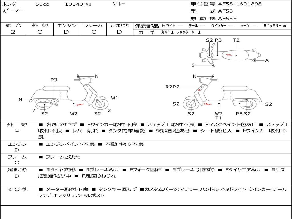 | Номер рамы / VIN | AF58-1601898 |
