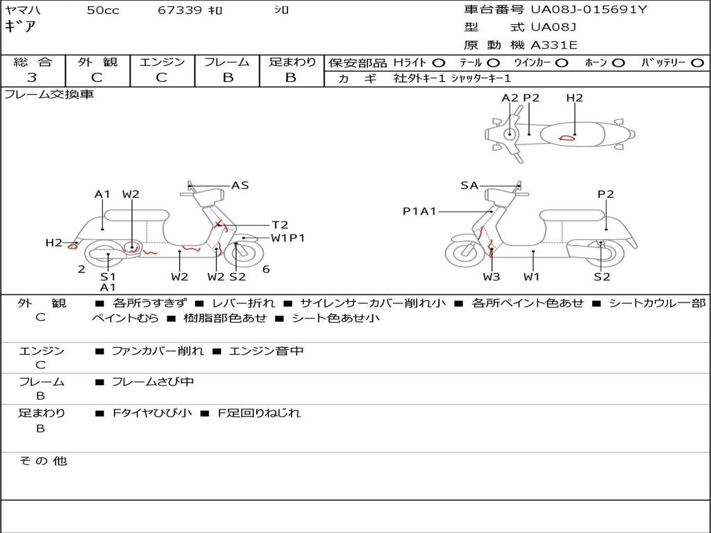 | Номер рамы / VIN | UA08J-015691Y |