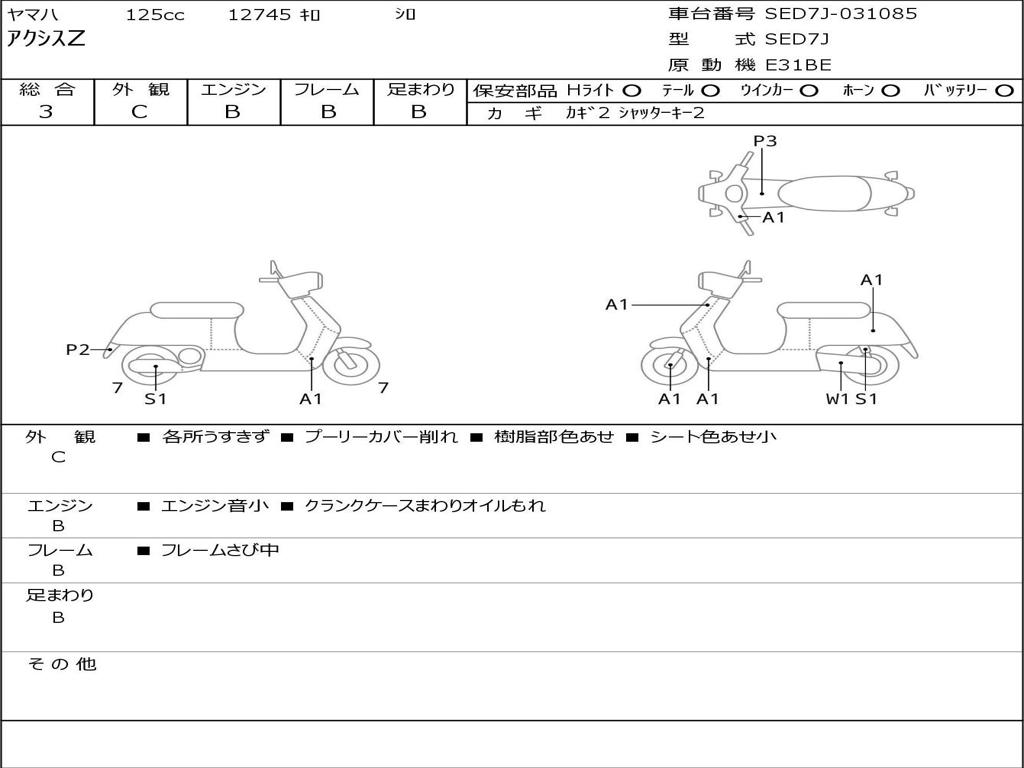 | Номер рамы / VIN | SED7J-031085 |