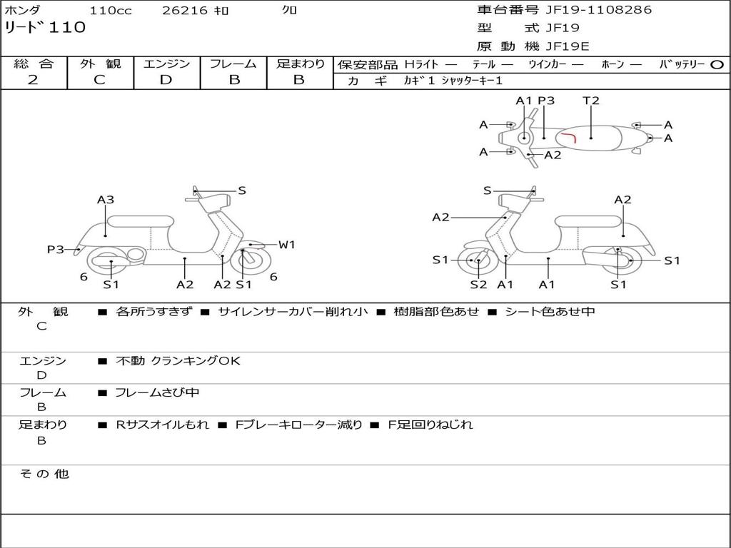 | Номер рамы / VIN | JF19-1108286 |