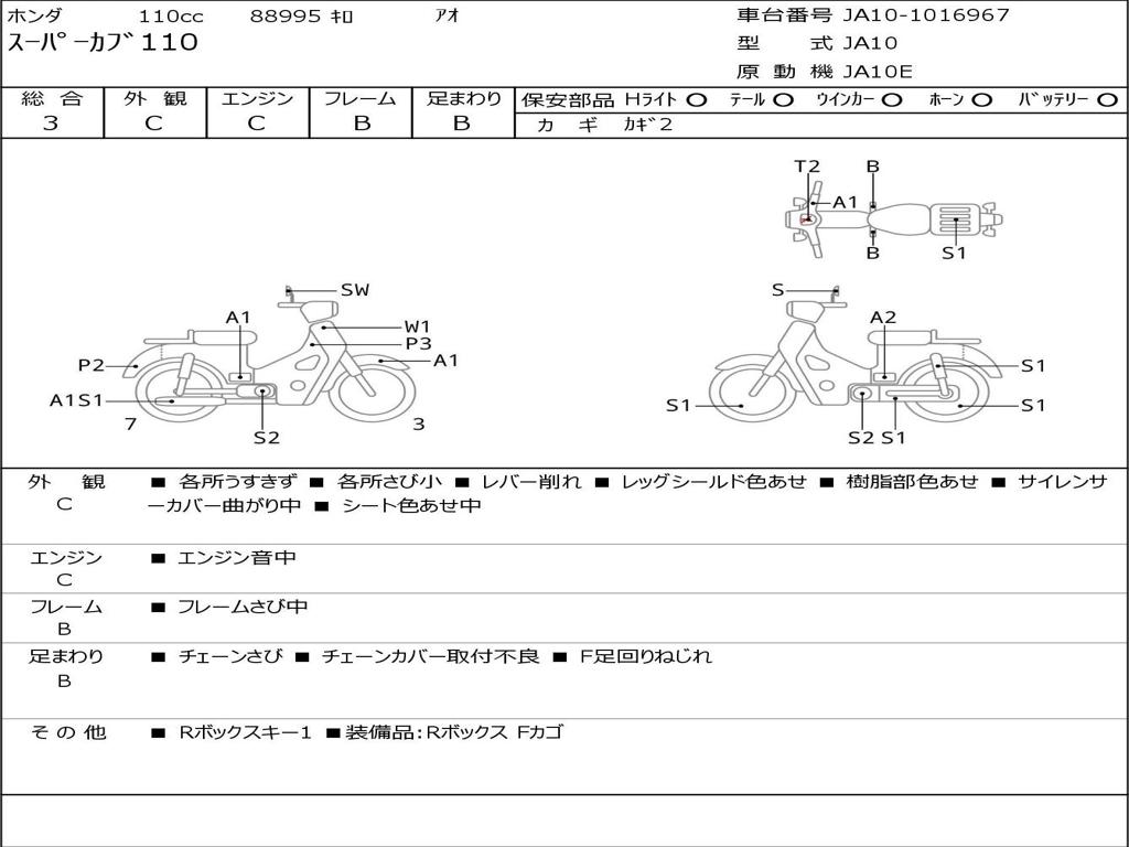 | Номер рамы / VIN | JA10-1016967 |