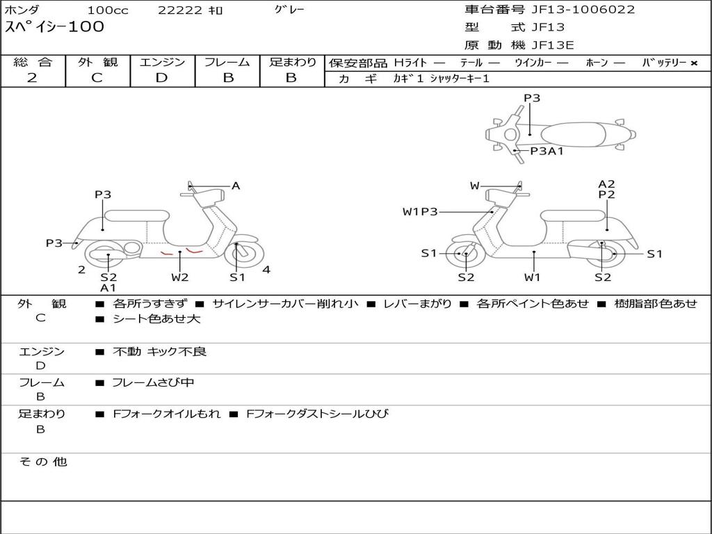 | Номер рамы / VIN | JF13-1006022 |
