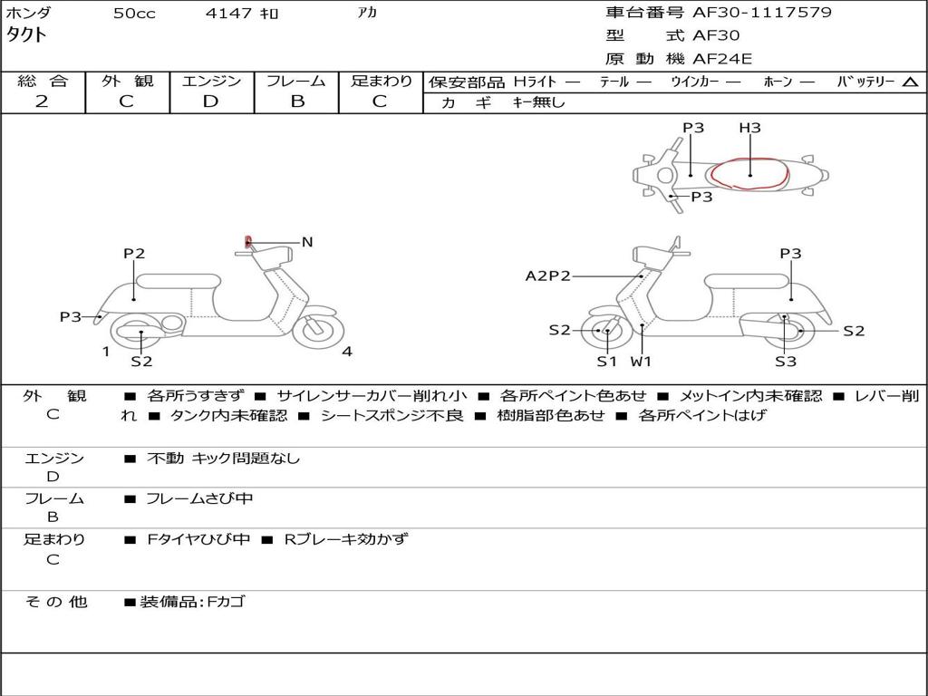 | Номер рамы / VIN | AF30-1117579 |