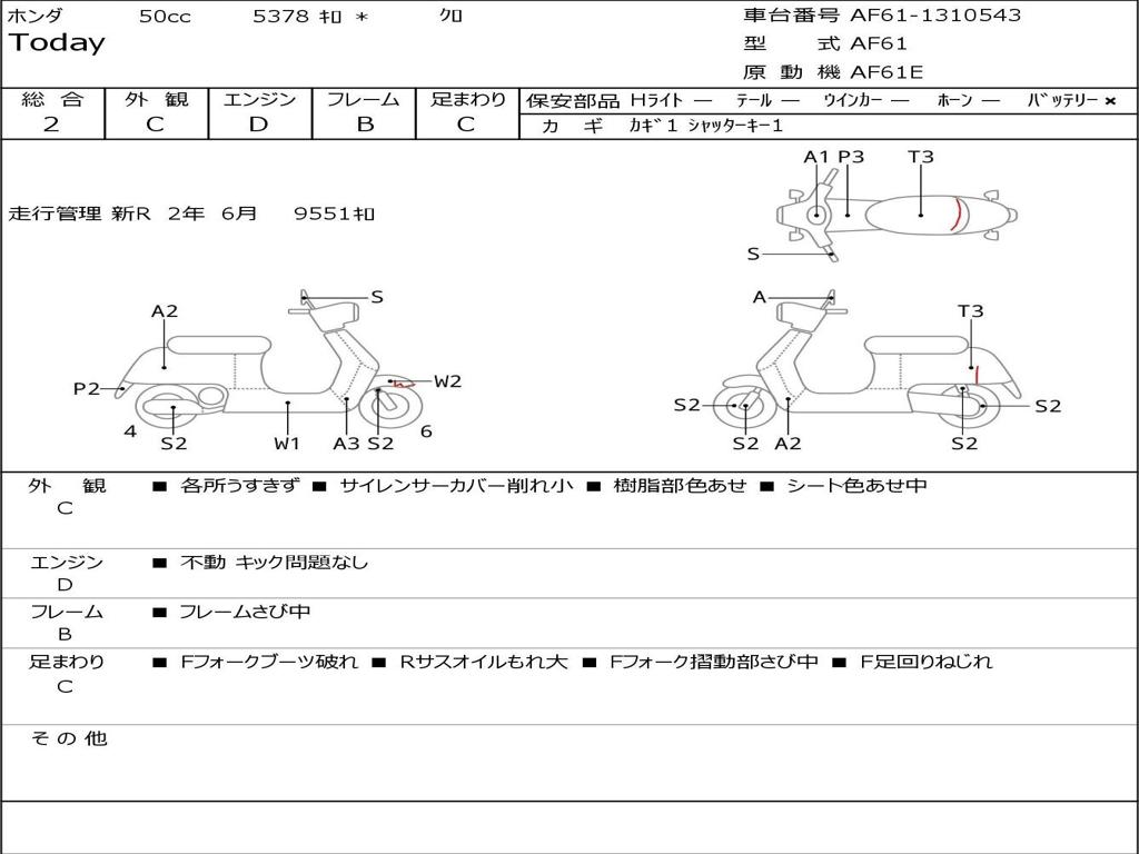 | Номер рамы / VIN | AF61-1310543 |