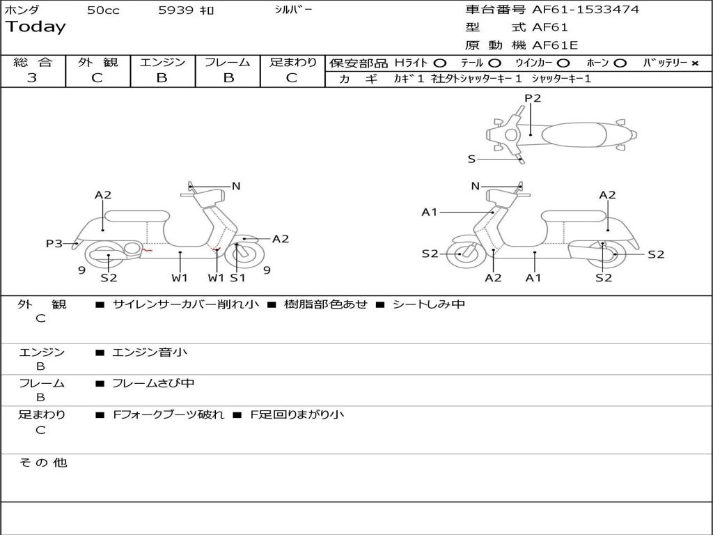| Номер рамы / VIN | AF61-1533474 |
