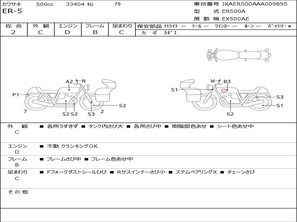 | Номер рамы / VIN | JKAER500AAA009895 |