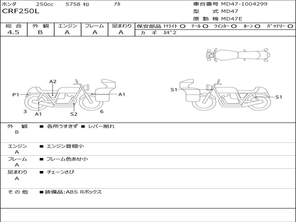 | Номер рамы / VIN | MD47-1004299 |