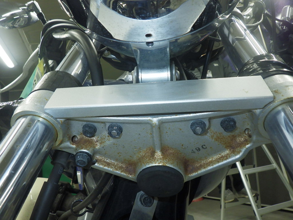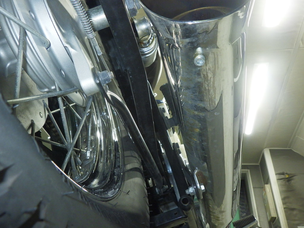 | внешняя часть вилки | следы коррозии <много>, полирован., потек масла, неисправен сальник |