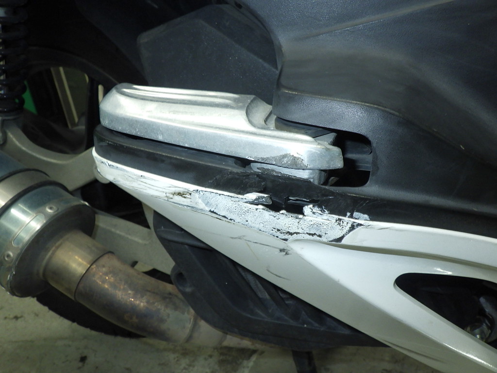 | снизу | царапины <много>, частичная подкраска, трещины |