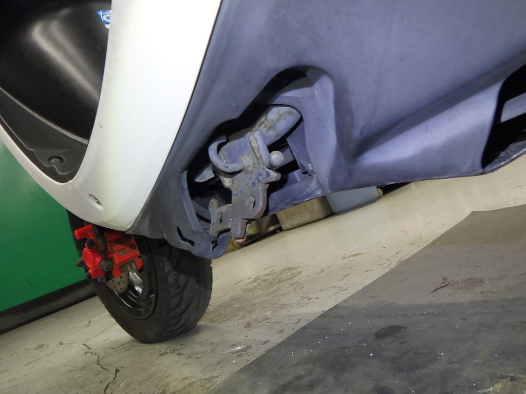 | снизу | царапины <много>, неисправен шарнир |