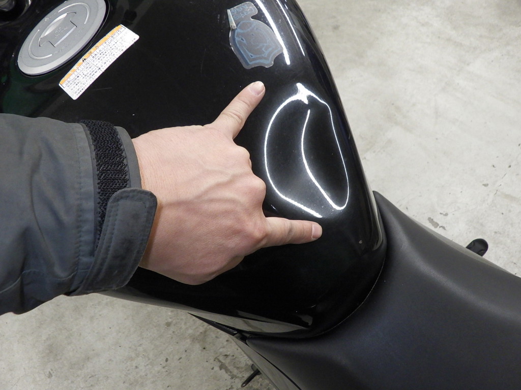 | бензобак | вмятина <много>, царапины <много>, частичная подкраска, неисправность, исправлен. |