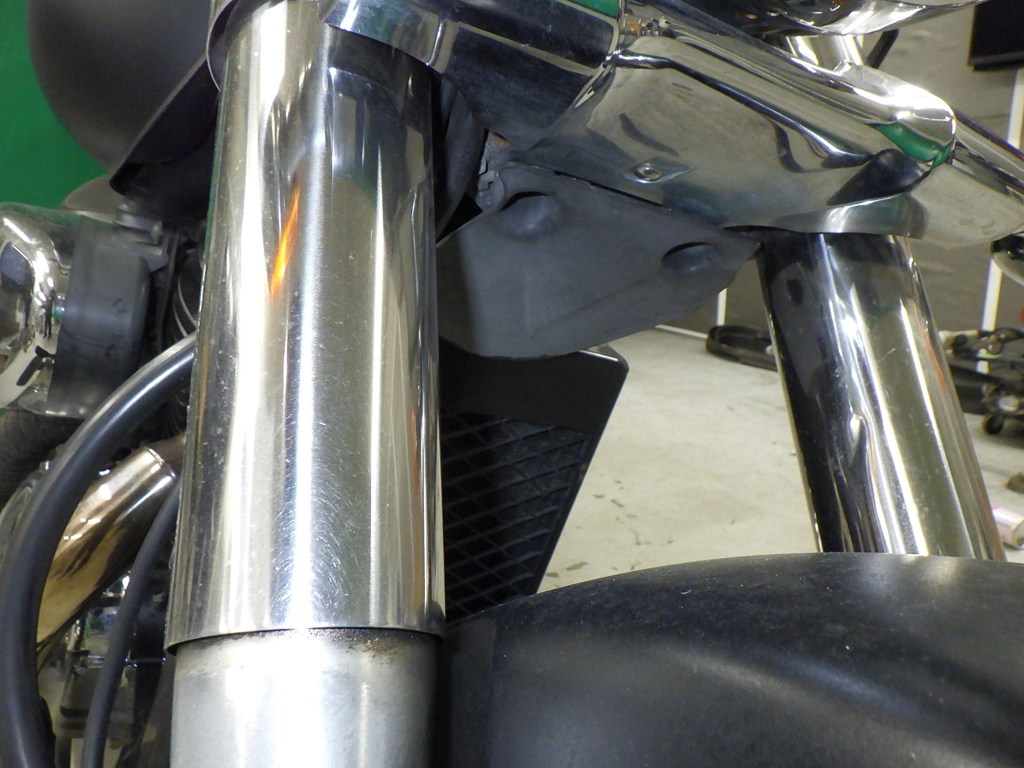 | внешняя часть вилки | следы коррозии <много>, полирован., износ(потертость) краски, потек масла <немного> |