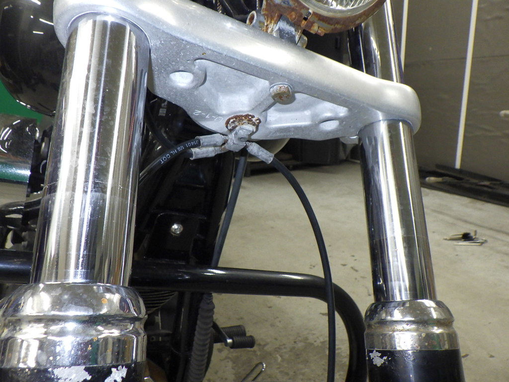 | внешняя часть вилки | следы коррозии <много>, потек масла |