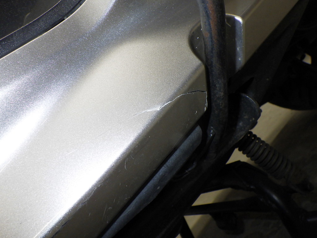 | снизу | царапины <много>, частичная подкраска, неисправность, трещины |