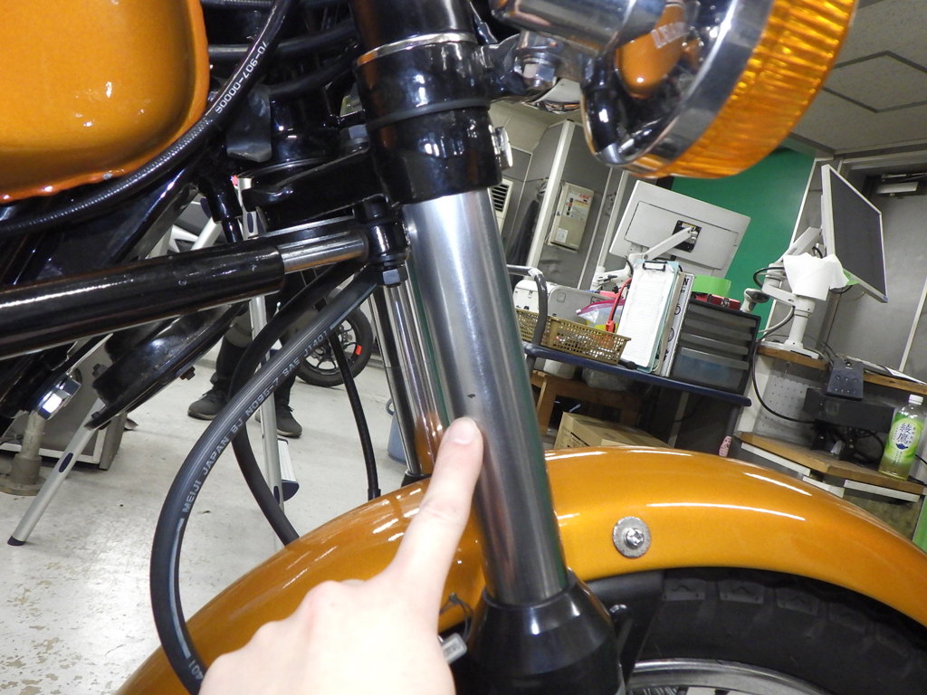 | внешняя часть вилки | царапины, вмятина <немного>, следы коррозии, полирован., неисправен сальник, неисправность |