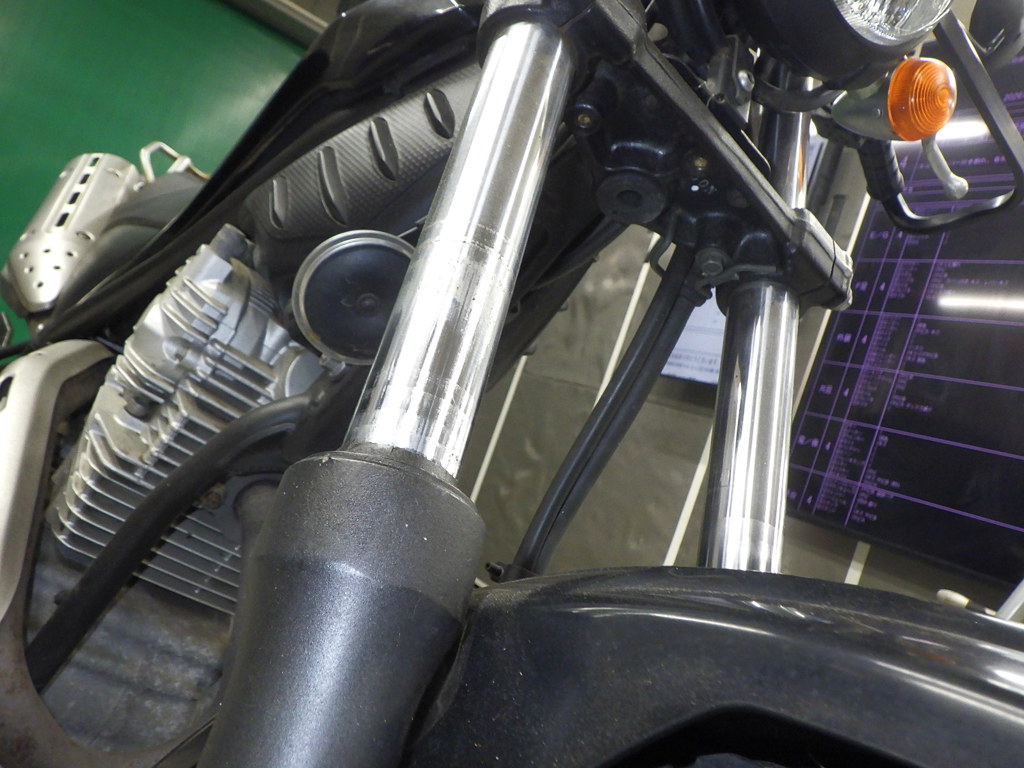 | внешняя часть вилки | потек масла |