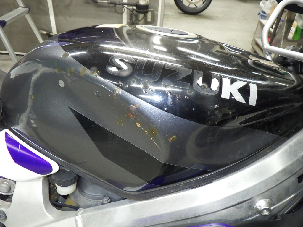 | бензобак | следы коррозии <много>, царапины, вмятина, дырка <много>, неисправен шарнир |