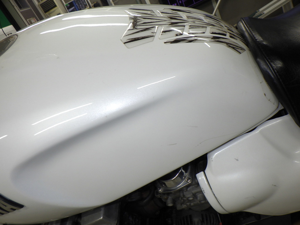 | бензобак | частичная подкраска, потертость краски, вздутие <средне>, скол краски, исправлен. |