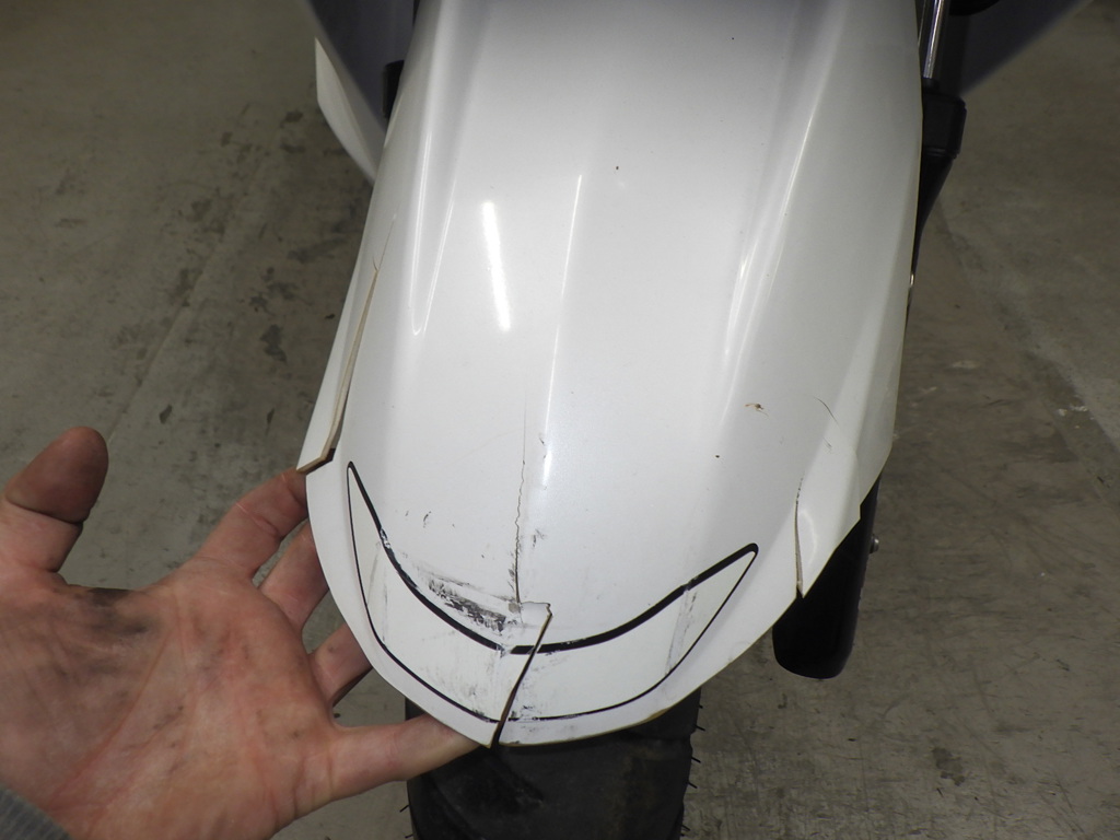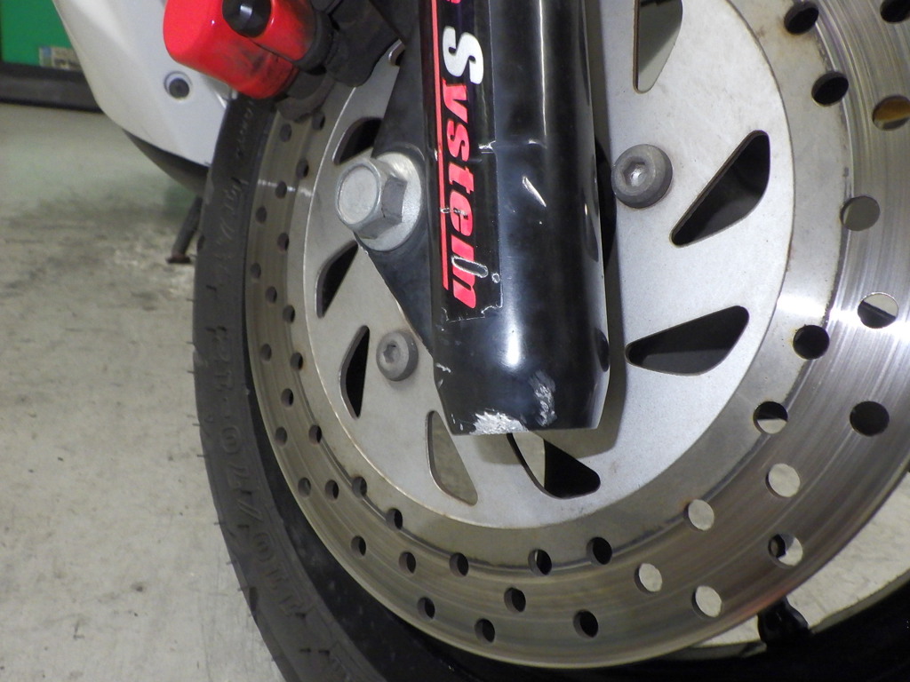 | внешняя часть вилки | царапины <много>, потек масла <много> |