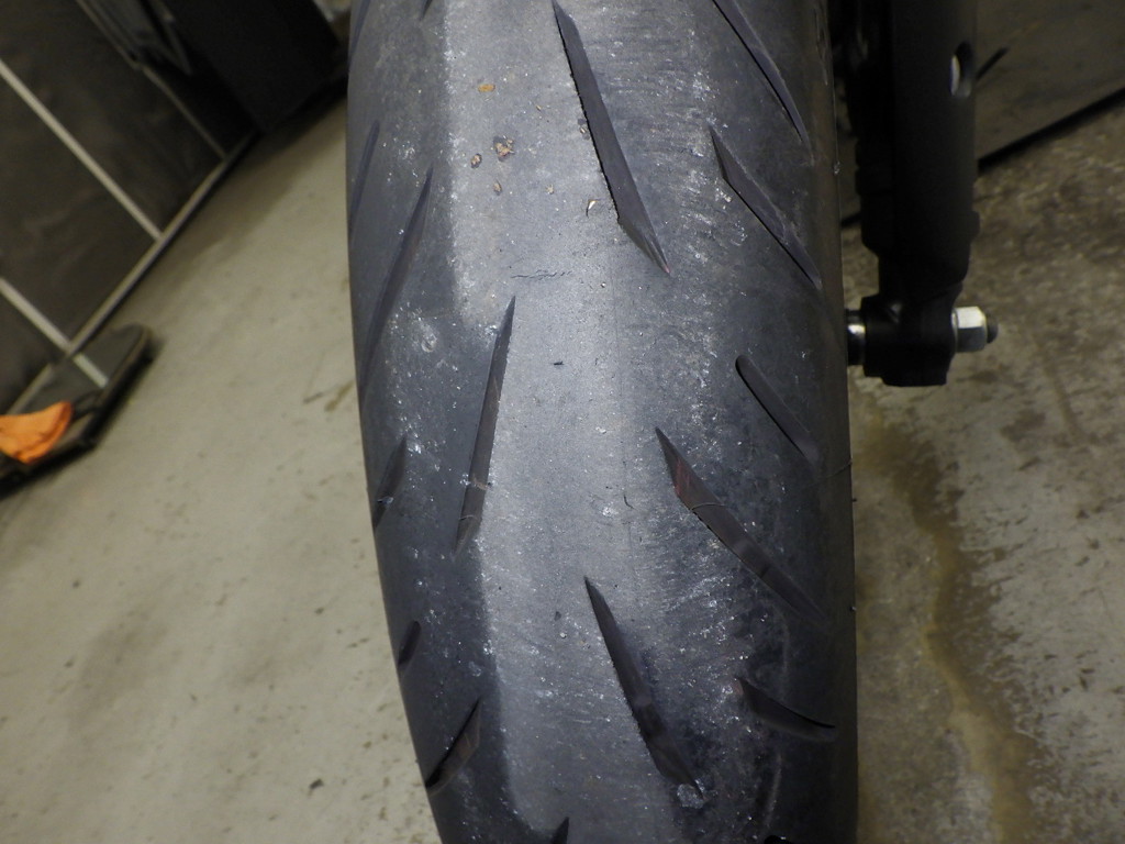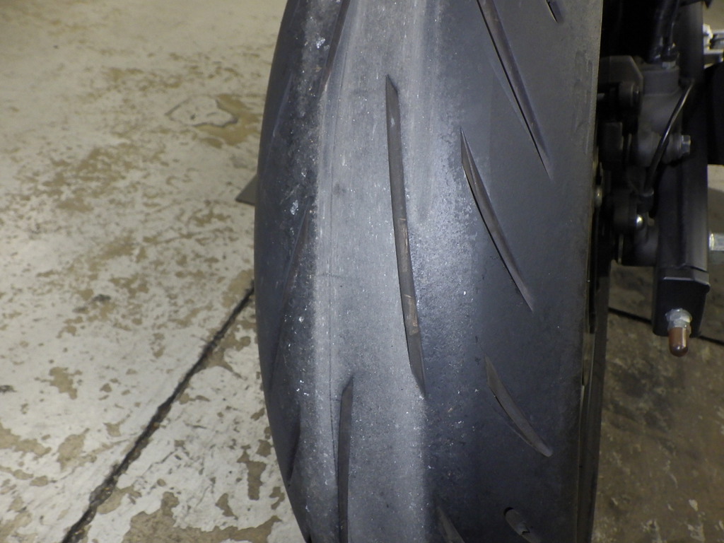 | внешняя часть вилки | царапины, потек масла <много> |