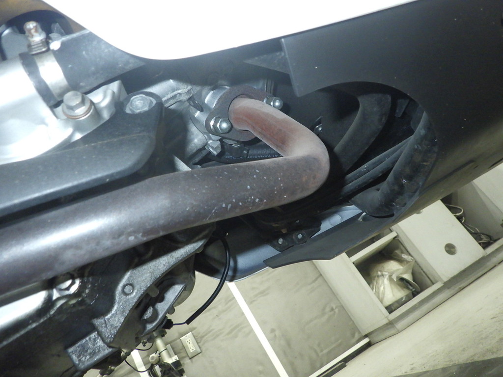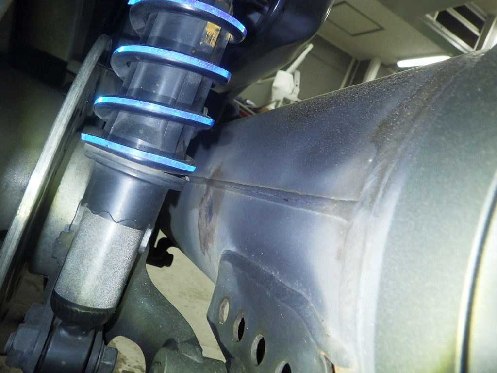| снизу | царапины <много>, частичная подкраска, трещины |