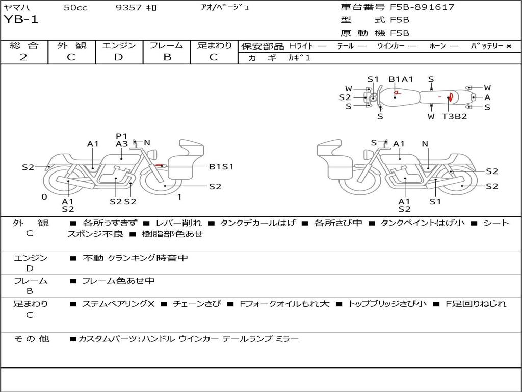 | Номер рамы / VIN | F5B-891617 |