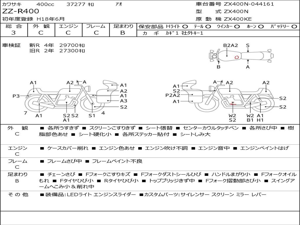 | Номер рамы / VIN | ZX400N-044161 |