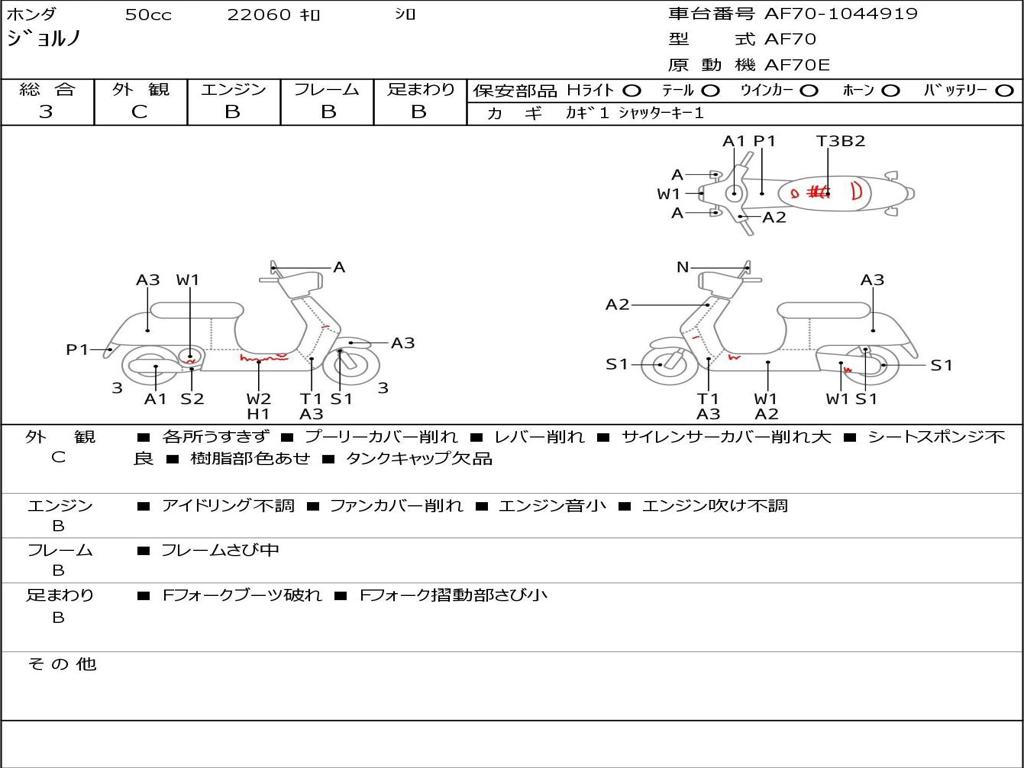 | Номер рамы / VIN | AF70-1044919 |