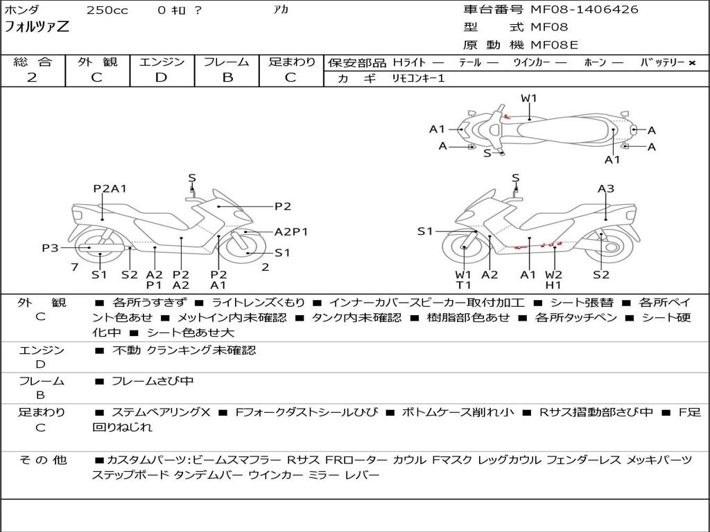 | Номер рамы / VIN | MF08-1406426 |