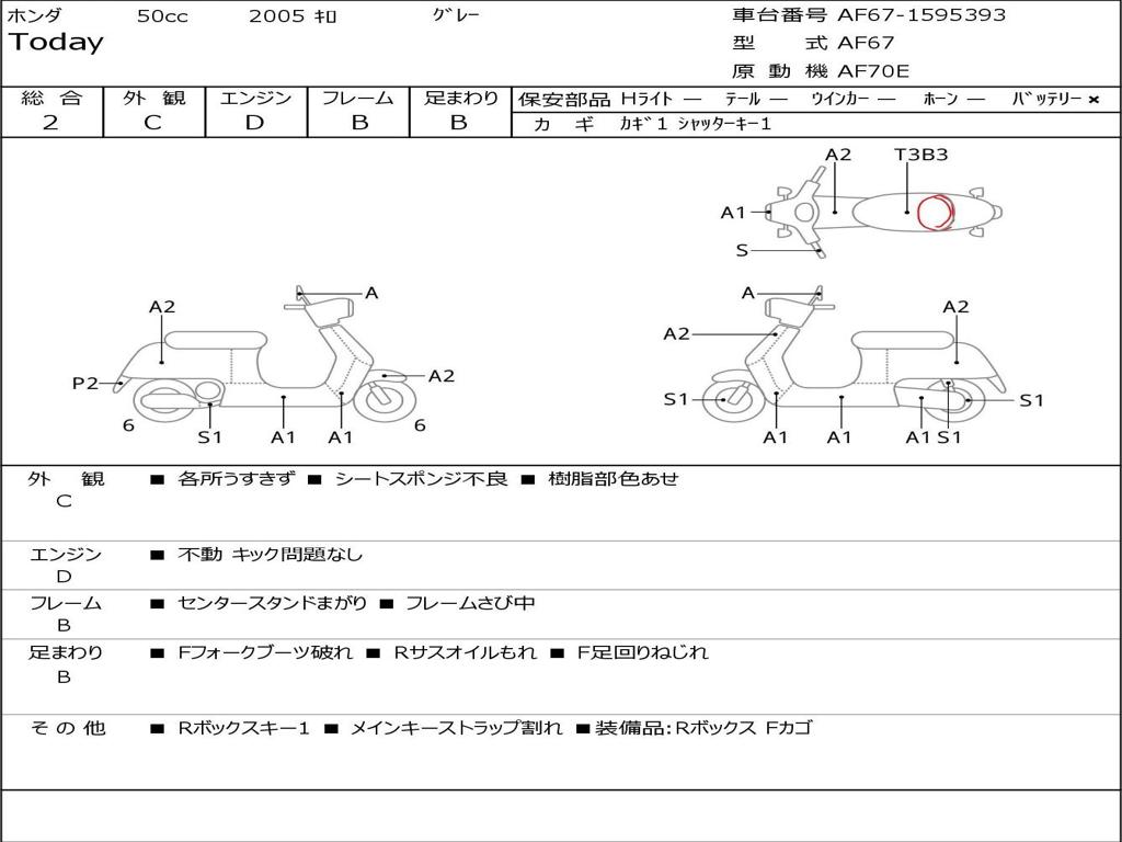 | Номер рамы / VIN | AF67-1595393 |