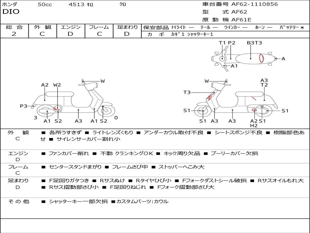 | Номер рамы / VIN | AF62-1110856 |