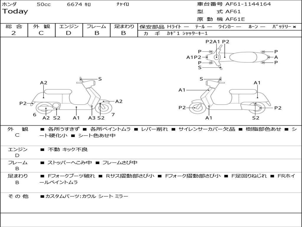| Номер рамы / VIN | AF61-1144164 |