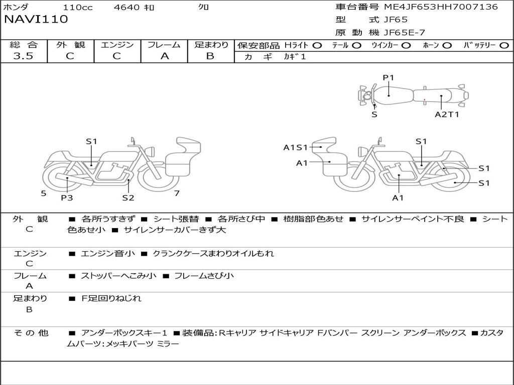 | Номер рамы / VIN | ME4JF653HH7007136 |