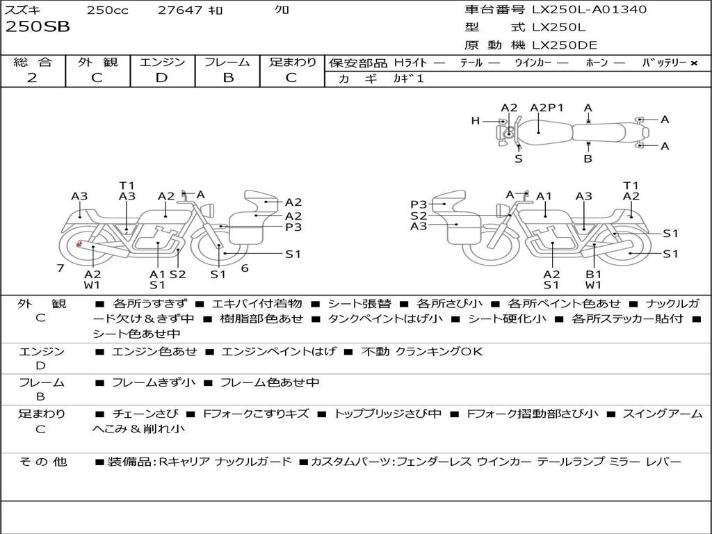 | Номер рамы / VIN | LX250L-A01340 |